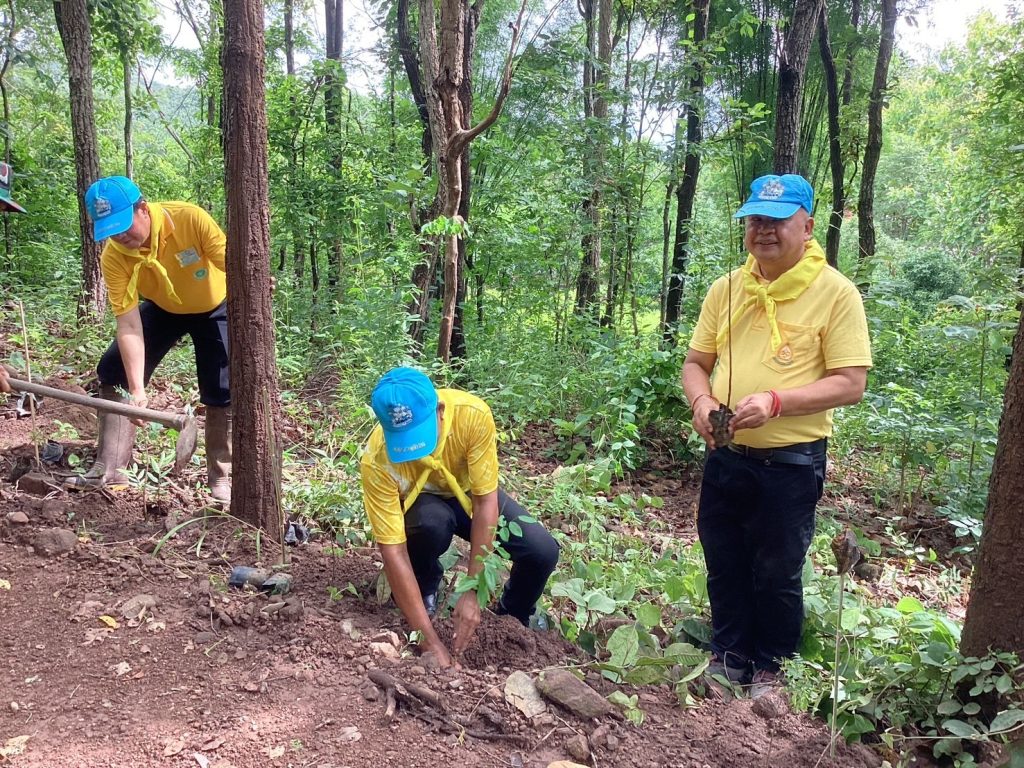 วันที่ 13 สิงหาคม 2567 เวลา 09.00 น. โดยการอำนวยการของ พ.ต.อ.เจษฎา จุโฑปะมา ผกก.สภ.เทิง มอบหมายให้ พ.ต.ต.ณัฏฐกิตติ์ สุวรรณคำวงค์ สวป.(ชส.) สภ.เทิง พร้อมข้าราชการตำรวจชุดจิตอาสา สภ.เทิง ร่วมกับ ส่วนราชการ ผู้นำชุมชน และประชาชนจิตอาสา ทำกิจกรรมจิตอาสาบำเพ็ญประโยชน์ โดยร่วมกันปลูกต้นไม้และทำฝายชะลอน้ำ เนื่องในโอกาสวันเฉลิมพระชนมพรรษา สมเด็จพระนางเจ้าสิริกิติ์พระบรมราชินีนาถ พระบรมราชชนนีพันปีหลวง 12 สิงหาคม 2567 ณ บริเวณป่าชุมชน บ้านจำไคร้ ม.9 ต.แม่ลอย อ.เทิง จว.เชียงราย