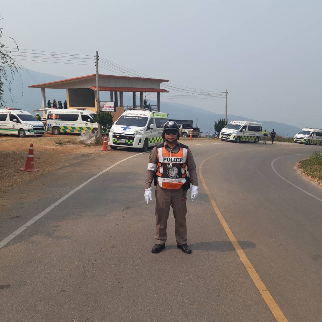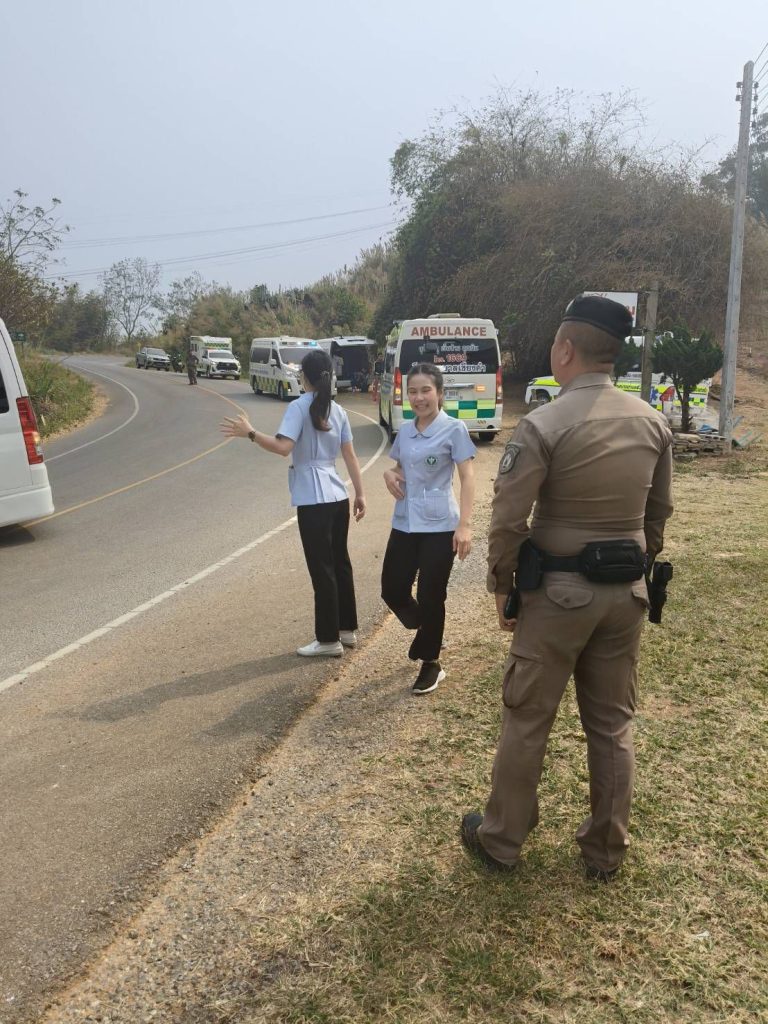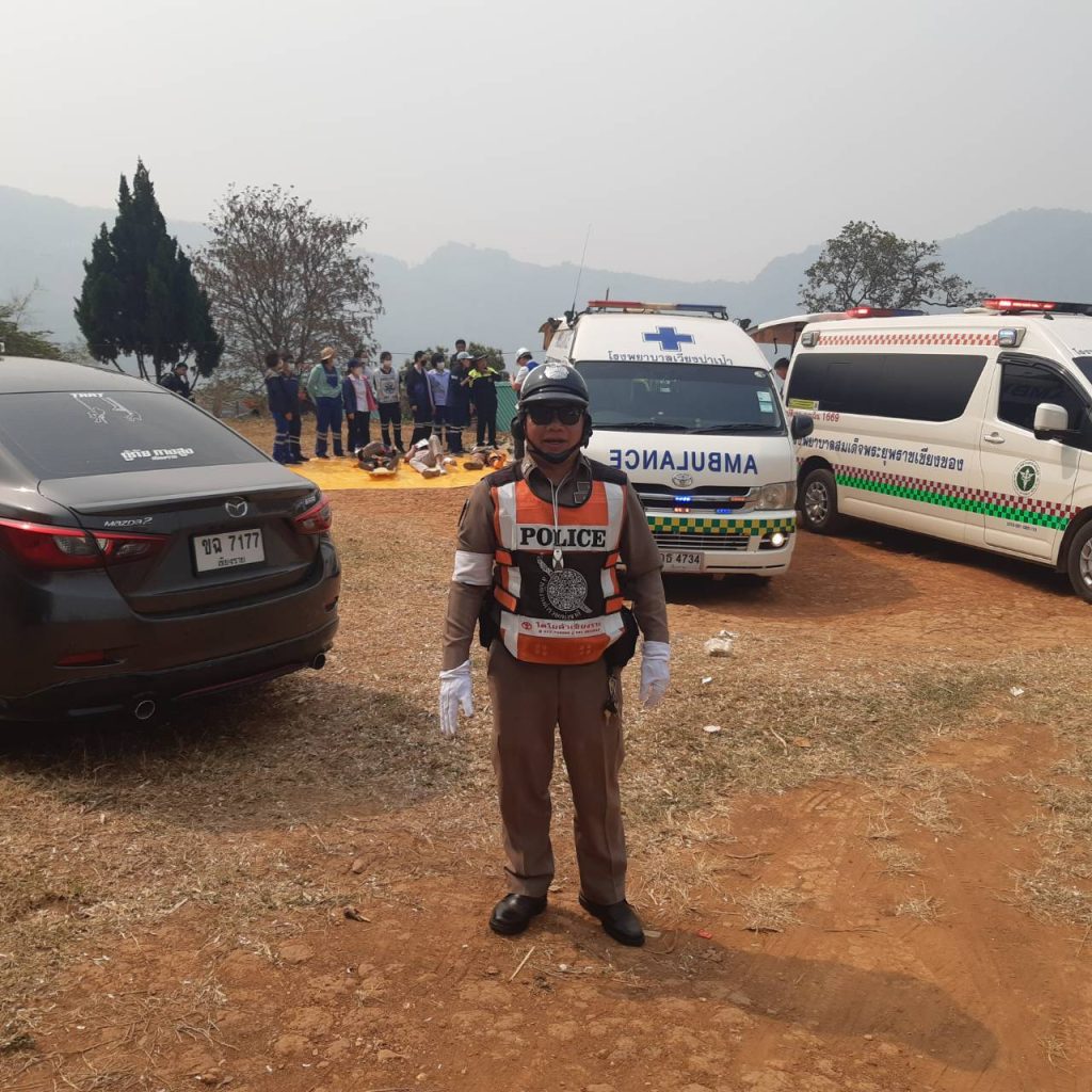 สั่งการให้ สายตรวจรถยนต์ สายตรวจจราจร สายตรวจภูชี้ฟ้า ออกปฏิบัติหน้าที่อำนวยสะดวกด้านการจราจร บ้านร่มฟ้าไทยใกล้แยกไป อ.เวียงแก่น ได้ร่วม เจ้าหน้าที่โรงพยาบาลเทิง ซักซ้อมแผนเผชญเหตุอุบัติเหตุหมู่ เพื่อเตรียมรับมือกับสถานการณ์ เนื่องจากในช่วง ฤดูหนาวของทุกปี มีจำนวนนักท่องเที่ยวเดินทางมาท่องเที่ยวที่ ภูชีฟ้าเป็นจำนวนมาก