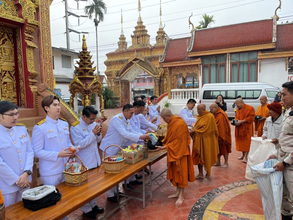 วันที่ 14 ม.ค.2568 เวลา 06.00 น. พ.ต.อ.เจษฎา จุโฑปะมา ผกก.สภ.เทิง ร่วมกิจกรรมเฉลิมพระเกียรติพระบาทสมเด็จพระเจ้าอยู่หัว เนื่องในโอกาสพระราชพิธีสมมงคลพระชนมายุเท่าพระบาทสมเด็จพระพุทธยอดฟ้าจุฬาโลกมหาราช สมเด็จพระปฐมบรมกษัตริยาธิราชแห่งพระราชวงศ์จักรี พุทธศักราช 2568 ณ วัดอำมาตย์ ต.เวียง อ.เทิง จ.เชียงราย โดยมี นายเอนก ปันทะยม นายอำเภอเทิง เป็นประธาน