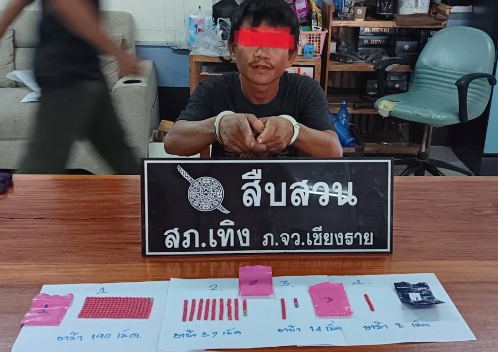 เมื่อวันที่ 18 ธ.ค.2567 ได้มีการจับกุมตัวผู้ต้องหา “ครอบครองยาเสพติดให้โทษประเภท 1 (เมทแอมเฟตามีนหรือยาบ้า) โดยไม่ได้รับอนุญาตฯ” จำนวน 1 ราย 1 คน ได้จับกุมนายพงศ์เทพ ไทยรักษา อายุ 38 ปี บ้านเลขที่ 147 ม.2 ต.ปล้อง อ.เทิง จว.เชียงราย พร้อมด้วยของกลางยาบ้า จำนวน 299 เม็ด เหตุเกิด ถนนในหมู่บ้าน ม.2 ต.ปล้อง อ.เทิง จว.เชียงราย