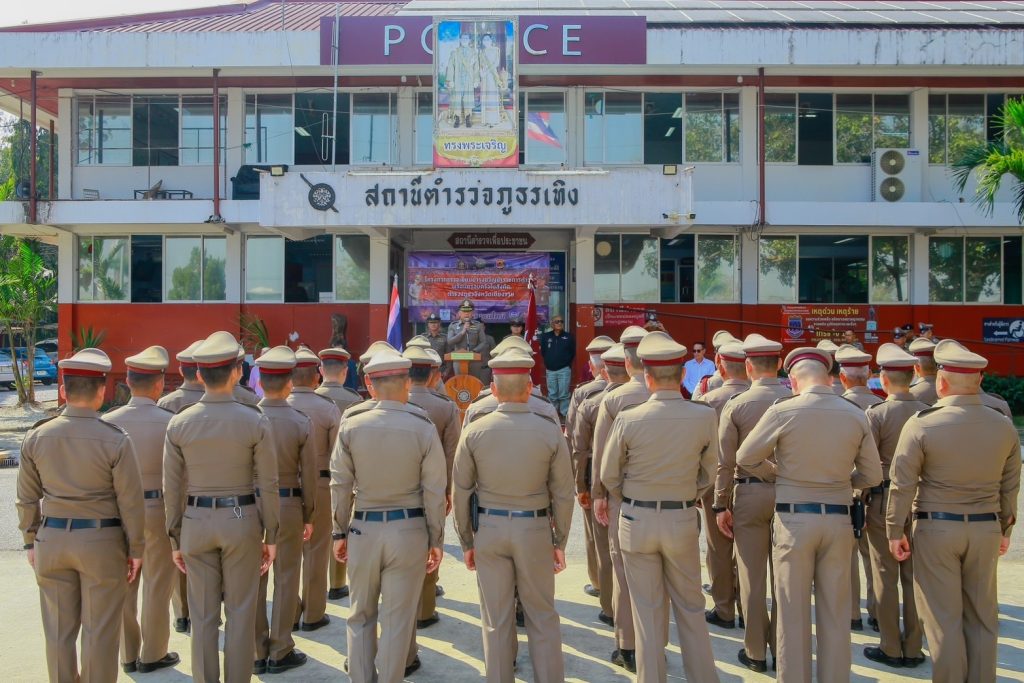 วันนี้(13 ก.พ.68) เวลา 10.24 น. พล.ต.ต.มานพ เสนากูล ผบก.ภ.จว.เชียงราย ได้เดินทางมาตรวจเยี่ยมบำรุงขวัญข้าราชการตำรวจ สภ.เทิง ตามโครงการตรวจเยี่ยมบำรุงขวัญข้าราชการตำรวจและครอบครัวฯ ในสังกัด ภ.จว.เชียงราย โดยมี พ.ต.อ.เจษฎา จุโฑปะมา ผกก.สภ.เทิง พร้อมข้าราชการตำรวจ สภ.เทิง ร่วมกับ ตัวแทนคณะ กต.ตร.สภ.เทิง และ ข้าราชการตำรวจบำนาญ สภ.เทิง ร่วมให้การต้อนรับ ได้มอบนโยบายการปฏิบัติราชการ นโยบายของสำนักงานตำรวจแห่งชาติ การให้บริการประชาชนในสถานีตำรวจ พร้อมทั้งกำชับการปฎิบัติป้องกันปราบปรามอาชญากรรม มอบสิ่งของบำรุงขวัญให้กับข้าราชการตำรวจ เยี่ยมชมแปลงผักเกษตรอินทรีย์ ตามโครงการ“บ้านนี้มีรักปลูกผักกินเอง” และ ได้ออกเยี่ยมผู้ป่วยติดเตียง ในพื้นที่ ต.หงาว และ ต.ตับเต่า พร้อมกับมอบสิ่งของยังชีพ ผ้าอ้อมผู้ใหญ่(แพมเพิส) เพื่อเป็นกำลังใจแก่ผู้ป่วยและญาติ