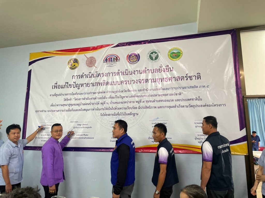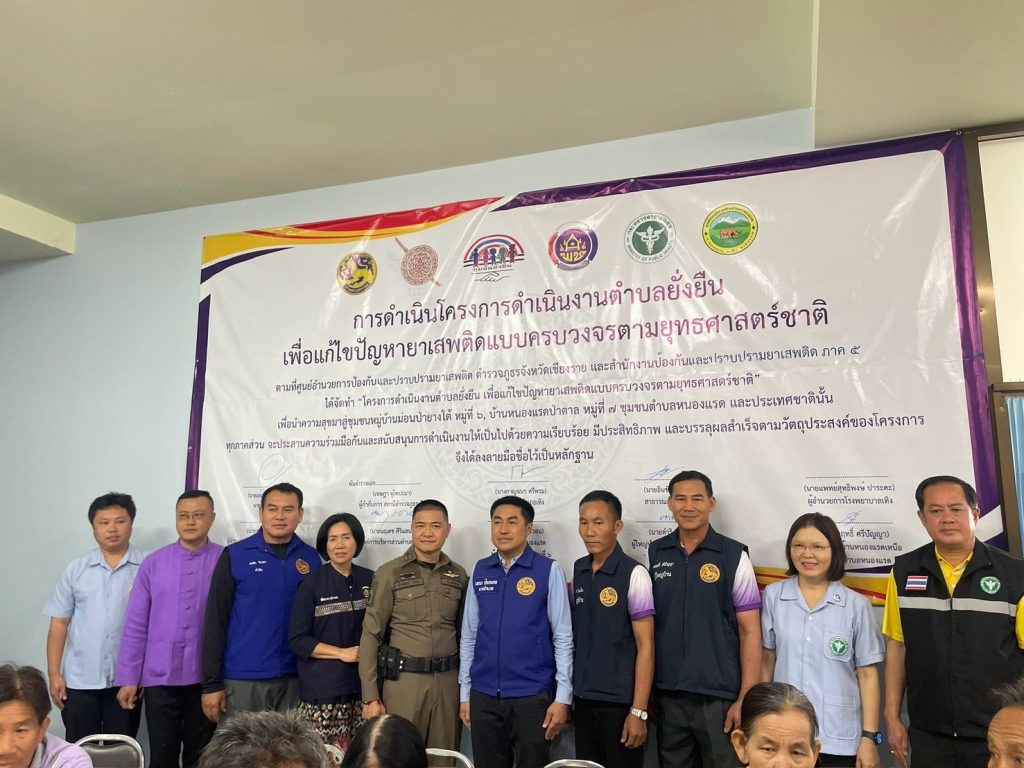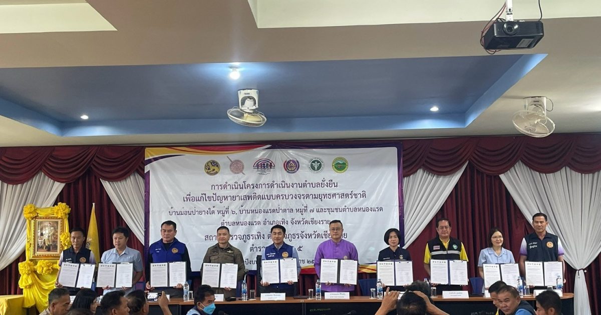 วันนี้ 14 มีนาคม 2568 เวลา 08.30 น. พ.ต.อ.เจษฎา จุโฑปะมา ผกก.สภ.เทิง มอบหมายให้ พ.ต.ท.พีรพัฒน์ โกษา รอง ผกก.ป.สภ.เทิง เป็นตัวแทน ผกก.ฯ พร้อมด้วย พ.ต.ท.ยศดนัย ชัยวงศ์ สวป.สภ.เทิง, พ.ต.ต.ณัฏฐกิตติ์ สุวรรณคำวงค์ สวป.(ชส.)พร้อมชุด ชป.ตำบลยั่งยืน สภ.เทิง, ชุดสืบสวน และสายตรวจ ต.ปล้อง ร่วมกับ อำเภอเทิง, พัฒนาชุมชนอำเภอเทิง, สาธารณสุขอำเภอเทิง, โรงพยาบาลเทิง, รพ.สต.หนองแรด, อบต.หนองแรด, กำนัน ผู้ใหญ่บ้าน ผู้ช่วยผู้ใหญ่บ้าน สารวัตรกำนัน แพทย์ประจำตำบลหนองแรด, อสม.ต.หนองแรด, ชรบ.ต.หนองแรด ครูและนักเรียนโรงเรียนหนองแรดวิทยา เข้าร่วมในพิธีเปิดโครงการดำเนินงานตำบลยั่งยืนเพื่อแก้ไขปัญหายาเสพติดแบบครบวงจรตามยุทธศาสตร์ชาติ ของ สภ.เทิง ณ ห้องประชุม อบต.หนองแรด ม.2 ต.หนองแรด อ.เทิง จ.เชียงราย โดยมี นายเอนก ปันทะยม นายอำเภอเทิง เป็นประธาน ได้ให้กำลังใจแก่คณะทำงาน และชุดปฏิบัติการ ได้ขอให้ทุกภาคส่วนใน ต.หนองแรด ช่วยกันขับเคลื่อนโครงการฯ เพื่อสร้างความเข้มแข็งให้กับชุมชน ในการให้ข้อมูลหาตัวผู้เสพยาเสพติดมาเข้ารับการบำบัดรักษาโดยชุมชน(CBTx) และหาตัวผู้ค้า ผู้จำหน่ายยาเสพติด เพื่อจับกุมดำเนินคดีตามกฎหมายอย่างเด็ดขาด โดยจะดำเนินการทั้งตำบล รวม 7 หมู่บ้าน เพื่อให้ประชาชน และชุมชน ต.หนองแรด มีคุณภาพชีวิตที่ดีขึ้น มีความมั่นคง ปลอดภัย ในชีวิตและทรัพย์สินอย่างยั่งยืนต่อไปครับ ในการนี้ได้ดำเนินการจัดทำบันทึกข้อตกลงร่วมกัน(MOU) และมีการตรวจปัสสาวะหาสารเสพติด หัวหน้าส่วนราชการ ผู้นำชุมชน และภาคประชาชนเพื่อเป็นแบบอย่างที่ดีและแสดงความบริสุทธิ์ใจ ผลการตรวจไม่พบผู้มีสารเสพติดในร่างกายแต่อย่างใดครับ