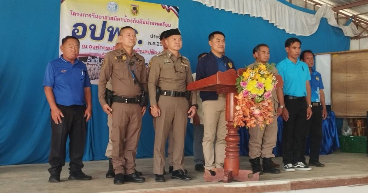 วันที่ 22 มีนาคม 2568 เวลา 10.00 น. สถานีตำรวจภูธรเทิง โดยผู้กำกับการ มอบหมายให้ พ.ต.ท.พีรพัฒน์ โกษา รองผู้กำกับการป้องกันปราบปราม และสายตรวจตำบลปล้อง ร่วมพิธีเปิดโครงการวันอาสาสมัครป้องกันภัยฝ่ายพลเรือน(อปพร.) ประจำปี 2568 ขององค์การบริหารส่วนตำบลปล้อง โดยมีนายเอนก ปันทะยม นายอำเภอเทิง เป็นประธานในพิธี ในการนี้ได้มอบหมายให้สายตรวจตำบลปล้อง ร่วมเป็นวิทยากรฝึกอบรบทบทวนแบบฝึกท่าบุคคลมือเปล่า และให้ความรู้การให้บริการจราจร การใช้สัญญาณนกหวีด สัญญาณมือ ให้กับอาสาสมัครป้องกันภัยฝ่ายพลเรือน(อปพร.) ขององค์การบริหารส่วนตำบลปล้อง เพื่อนำไปปฎิบัติหน้าที่ในหมู่บ้านและชุมชนต่อไป