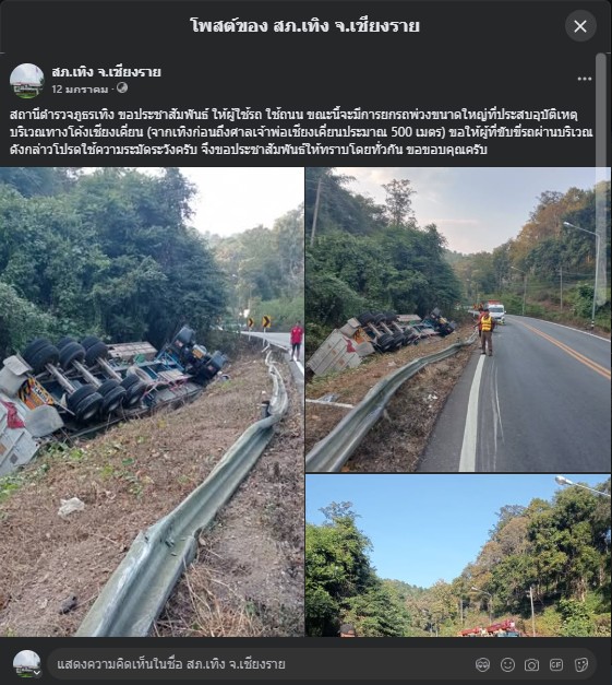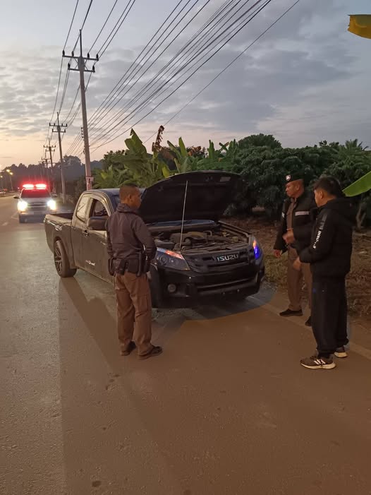 พนักงานสอบสวนเวรรับแจ้งว่ามีเหตุรถกระบะพลิกคว่ำ ถนนสายเทิง-ขุนตาล