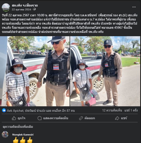 🌅🚓 เช้าวันนี้ 13 มกรคม 2568 สถานีตำรวจภูธรเทิง ได้รับแจ้งขอความช่วยเหลือจากประชาชน ซึ่งเป็นนักท่องเท