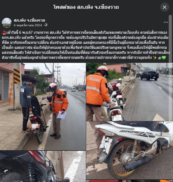 วันที่ 6 พ.ย.67 งานจราจร สภ.เทิง ได้ทำการตรวจยึดรถเสียงดังในเขตเทศบาลเวียงเทิง ตามข้อสั่งการของ ผกก.