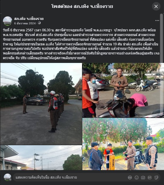สภ.เทิง ขานรับนโยบาย ผู้บังคับการตำรวจภูธรจังหวัดเชียงราย ในการตรวจจับรถ “แต่งท่อ เสียงดัง” สร้างความเดือดร้อน รำคาญ ให้กับประชาชน