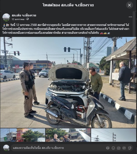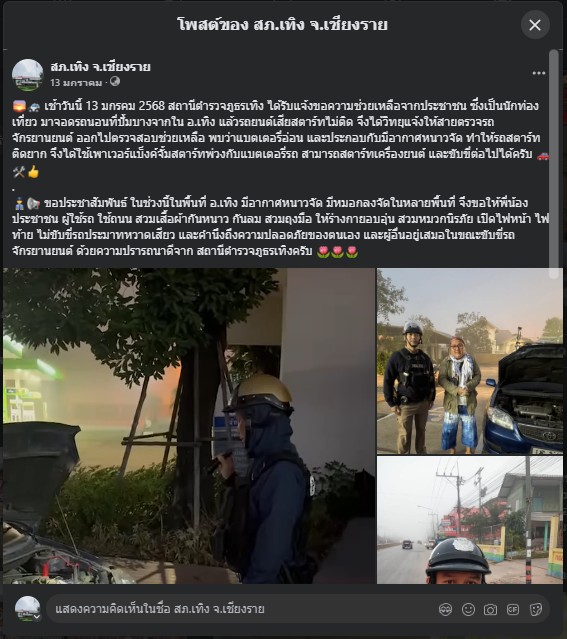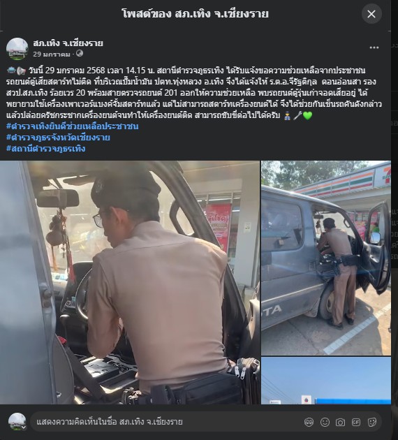 สายตรวจ สภ.เทิง ได้ให้การช่วยเหลือประชาชน กรณีรถยนต์เสียสตาร์ทเครื่องยนต์ไม่ติด