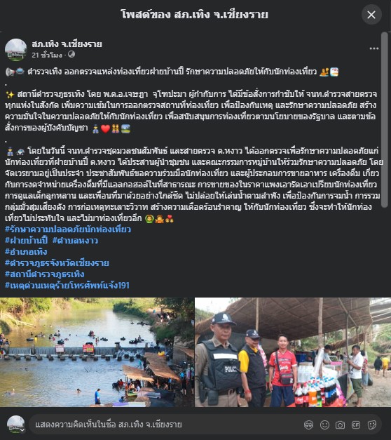 ตำรวจเทิง ออกตรวจแหล่งท่องเที่ยวฝายบ้านปี้ รักษาความปลอดภัยให้กับนักท่องเที่ยว